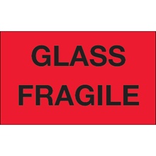 3 x 5" - "Glass - Fragile" (Fluorescent Red) Labels