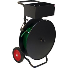 Versatile poly strapping cart.